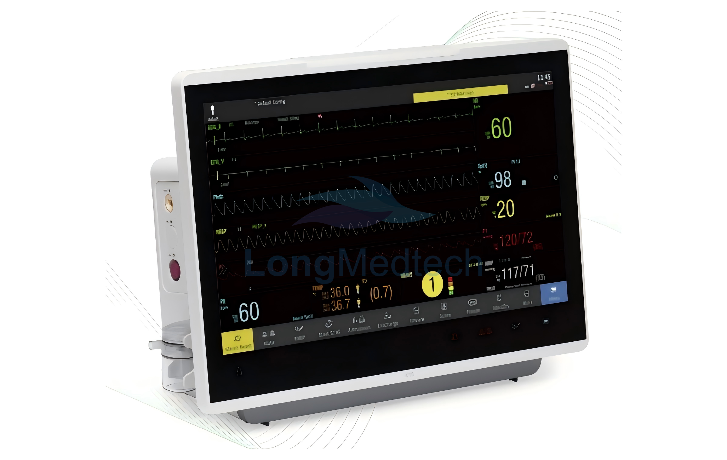 Patient monitors are essential medical devices, used in hospitals and home settings, that continuously measure, record, and display real-time vital signs, such as heart rate, blood pressure, oxygen saturation, and respiration. They improve patient care by providing, through sensors and cables, accurate data for rapid, informed medical interventions and identifying at-risk individuals, with longmed offering this model.