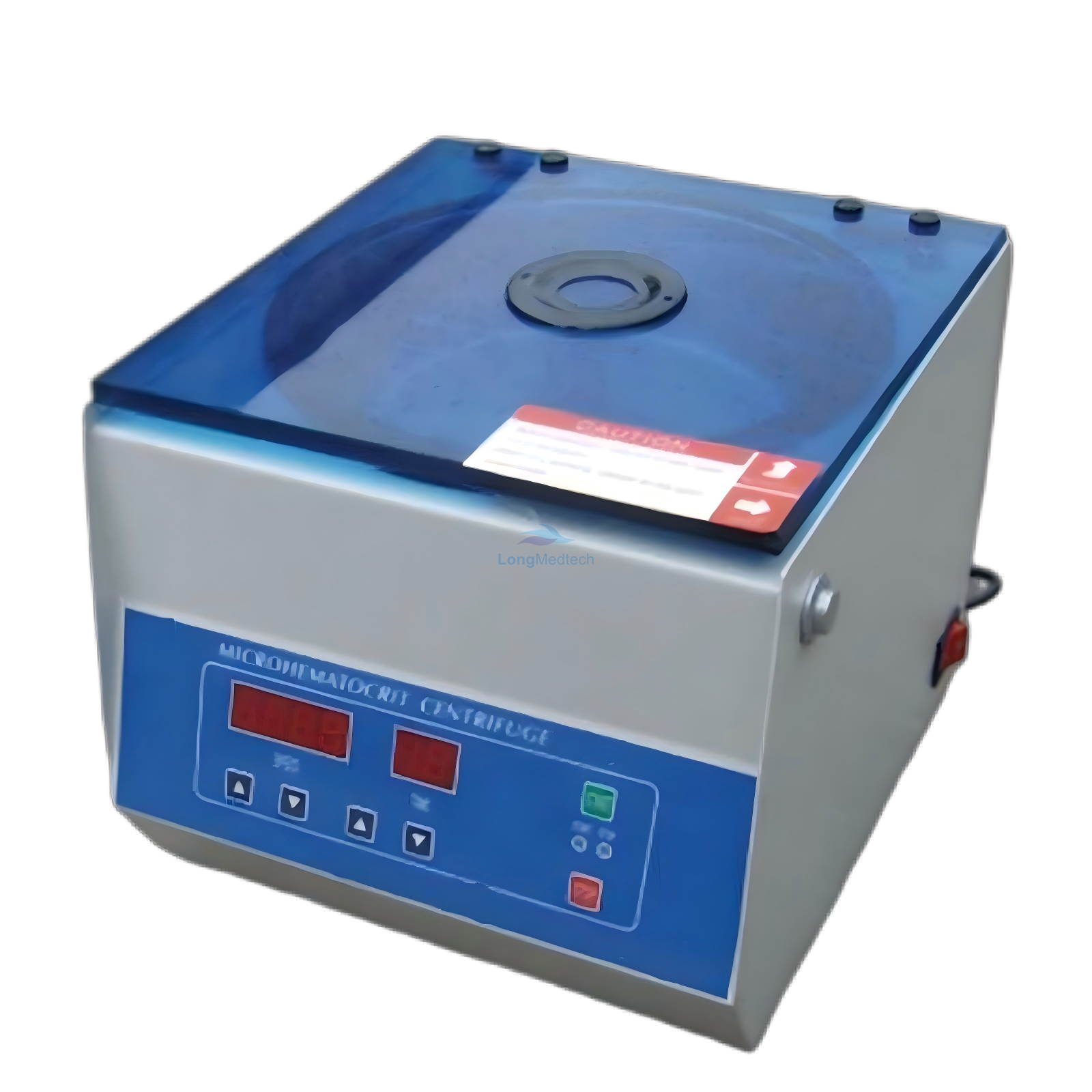 1)Open the door cover, hold the right hand of the centrifuge to press the button on the right, and lift the door coverto the left, until the support blockis supported.