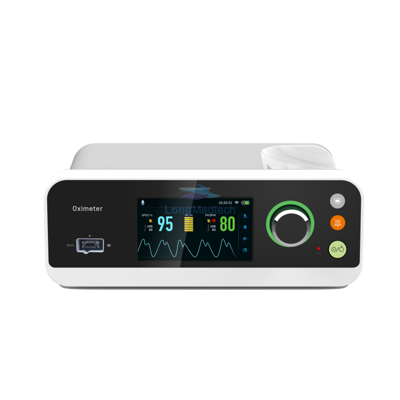 Displays plethysmographic waveforms, pulse amplitude, Perfusion index and current measured SpO2 and pulse rate.